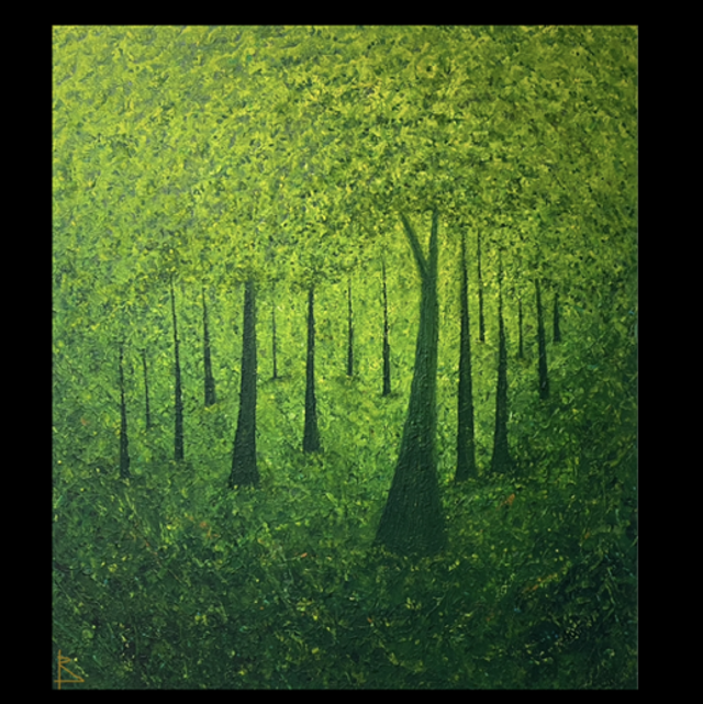 Textured acrylic painting on a large canvas.